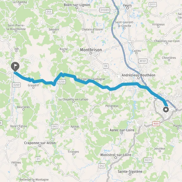 Au rond-point, prendre la 2ème sortie sur D996 (Route d'Ambert) et continuer sur 14 kilomètres
