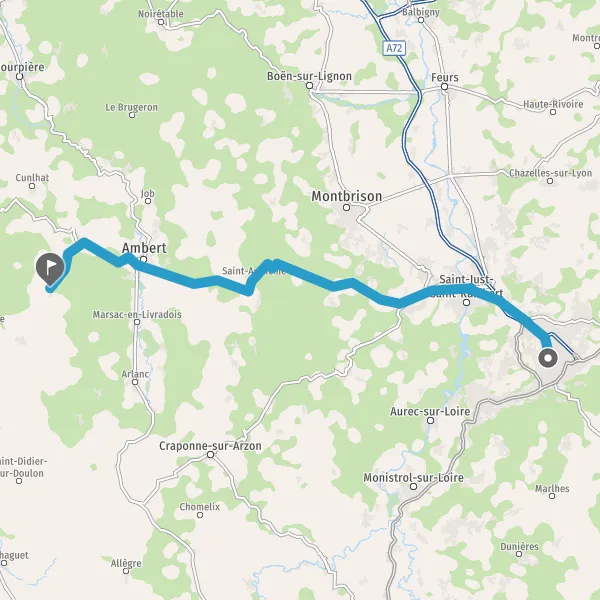 Au rond-point, prendre la 2ème sortie sur D996 (Route d'Ambert) et continuer sur 14 kilomètres