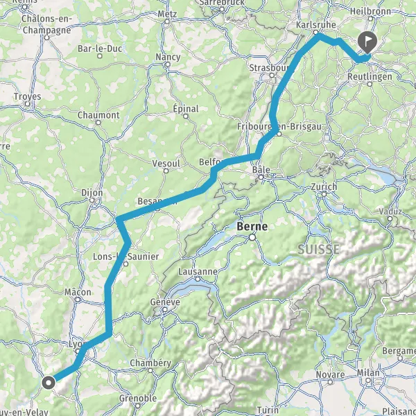 Prendre à droite et rejoindre A36 E60. Continuer sur 196 kilomètres