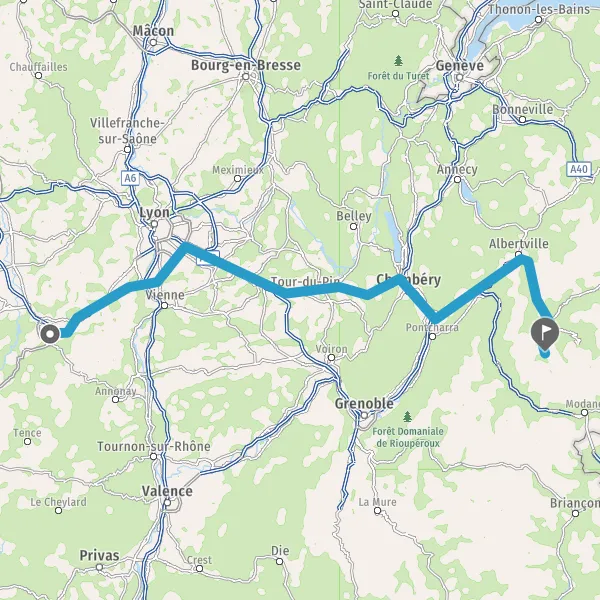 Prendre à droite et rejoindre A43. Continuer sur 19 kilomètres