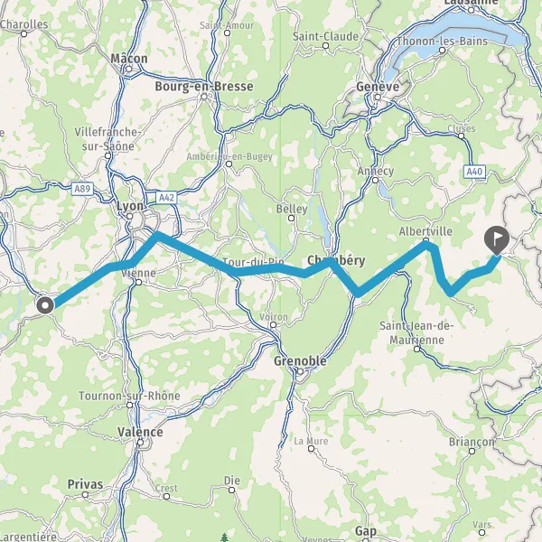 Prendre à droite et rejoindre A43 E70. Continuer sur 19 kilomètres