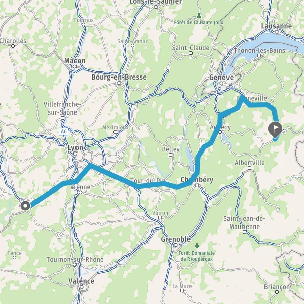 Prendre à droite et rejoindre A43 E711 E70. Continuer sur 21 kilomètres