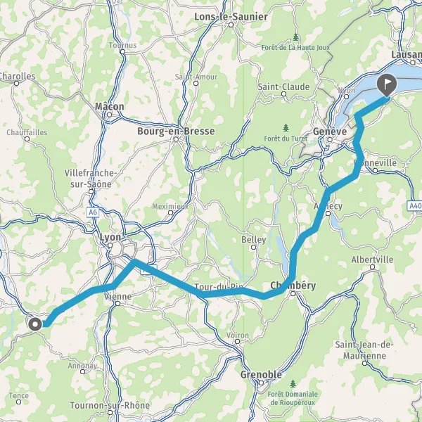 Prendre à droite et rejoindre A43 E711 E70. Continuer sur 12 kilomètres