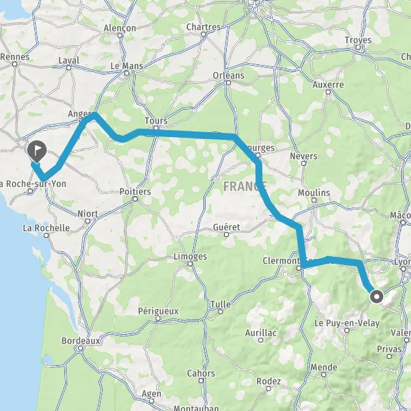 Prendre à droite et rejoindre A83 E3. Continuer sur 21 kilomètres
