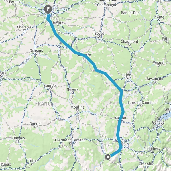 Prendre à droite et rejoindre A6. Continuer sur 294 kilomètres