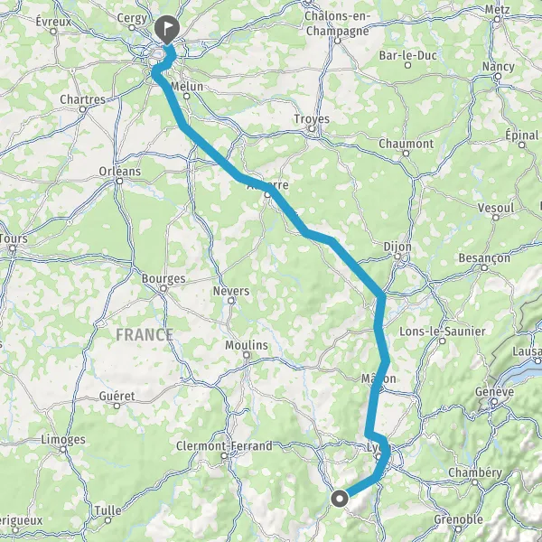 Prendre à droite et rejoindre A6. Continuer sur 294 kilomètres