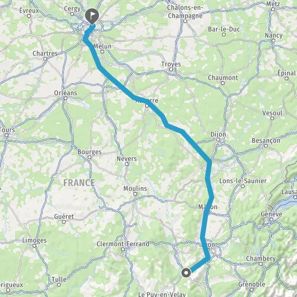 Prendre à droite et rejoindre A6. Continuer sur 294 kilomètres