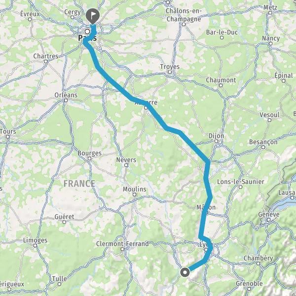 Prendre à droite et rejoindre A6. Continuer sur 294 kilomètres