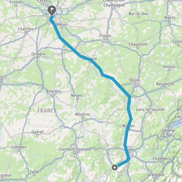 Prendre à droite et rejoindre A6. Continuer sur 294 kilomètres