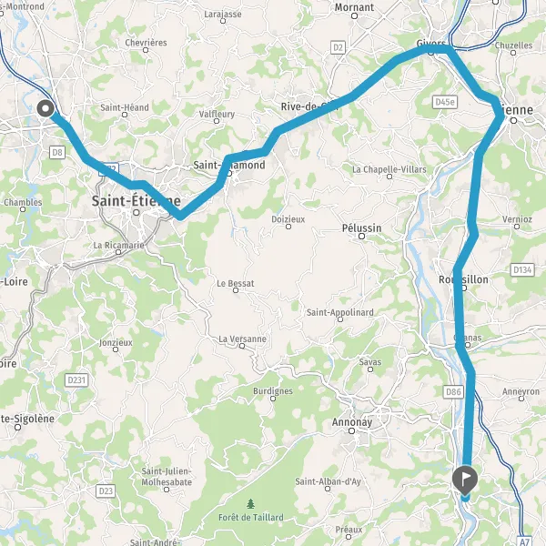 Au rond-point, prendre la 3ème sortie sur M1982 (Avenue de Saint-Étienne) et continuer sur 1 kilomètre