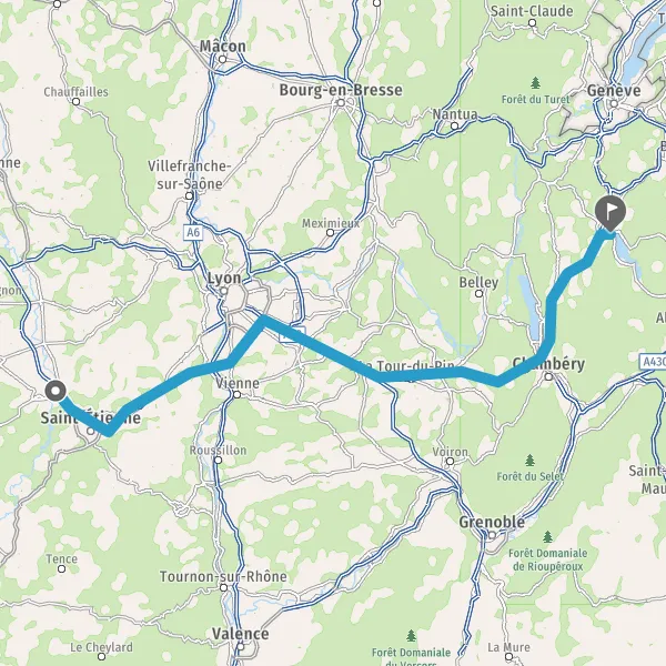 Prendre à droite et rejoindre A43 E711 E70. Continuer sur 34 kilomètres