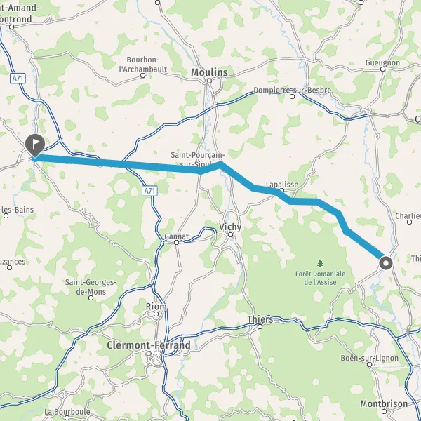 N7A71MontluçonMoulinsBourgesSaint-LoupNeuilly-le-RéalSaint-Pourçain-sur-Sioule