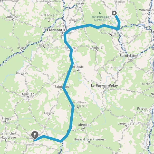 Continuer et rejoindre A89 E70. Continuer sur 77 kilomètres