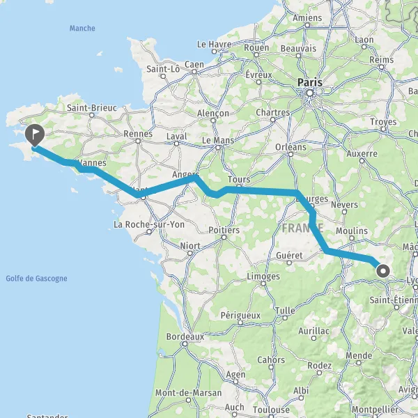 Prendre à droite et rejoindre A85 E604. Continuer sur 205 kilomètres