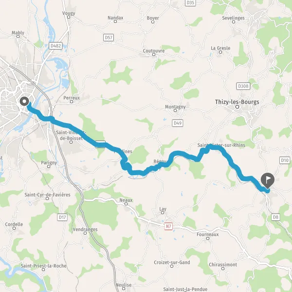 Au rond-point, prendre la 1ère sortie sur D9 (Rue de Thizy) et continuer sur 3,3 kilomètres
