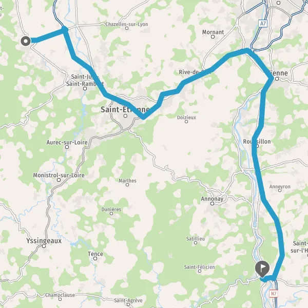 Au rond-point, prendre la 1ère sortie sur Route de Saint-Étienne et continuer sur 650 mètres