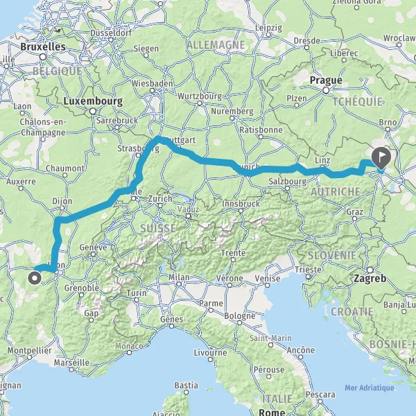 Prendre à droite et rejoindre A36. Continuer sur 228 kilomètres