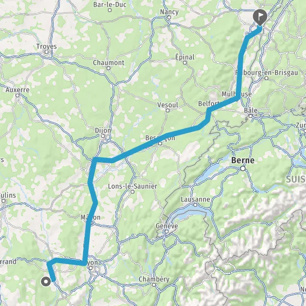 Prendre à droite et rejoindre A36 E60. Continuer sur 55 kilomètres
