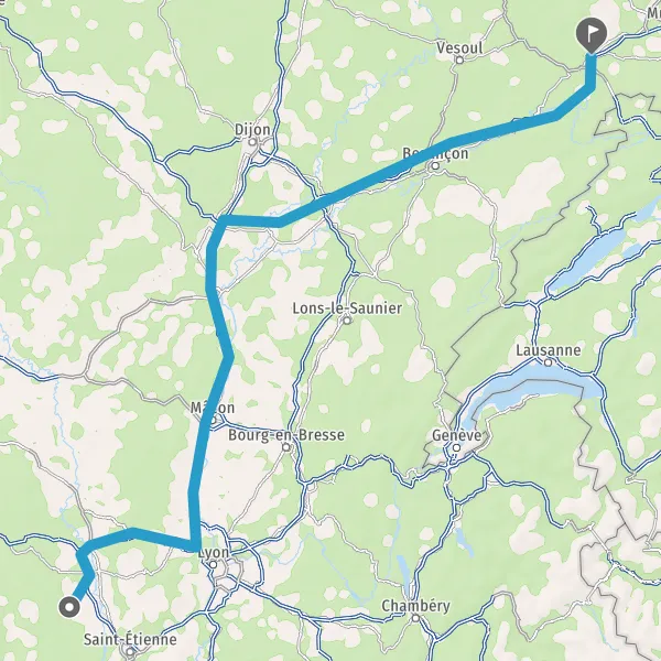 Prendre à droite et rejoindre A36. Continuer sur 180 kilomètres