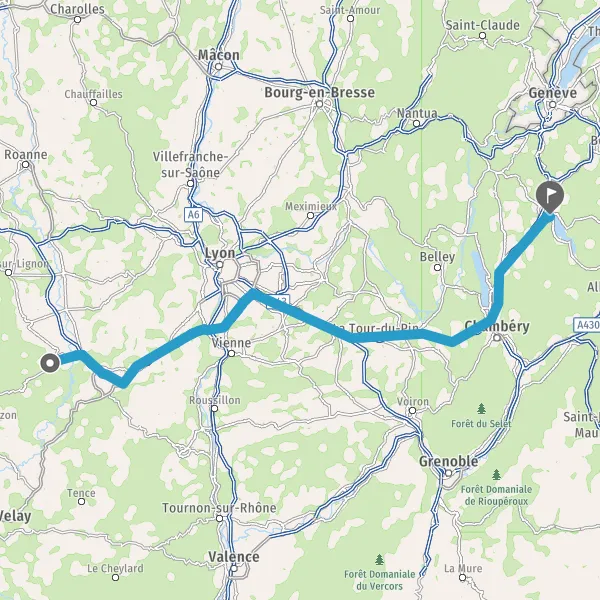 Prendre à droite et rejoindre A43 E711 E70. Continuer sur 34 kilomètres