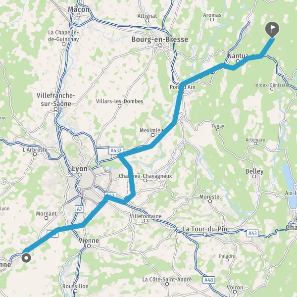 Prendre à droite et rejoindre A42. Continuer sur 4,3 kilomètres