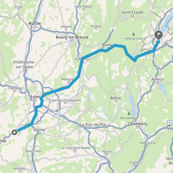 Prendre à droite et rejoindre A42. Continuer sur 4,3 kilomètres