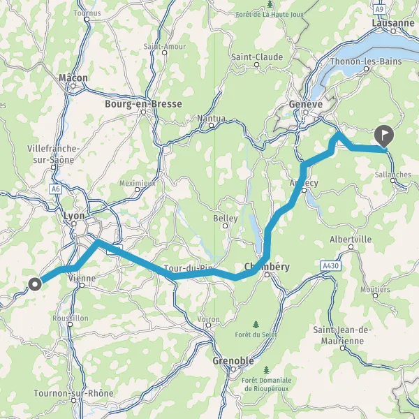 Prendre à droite et rejoindre A43 E711 E70. Continuer sur 12 kilomètres