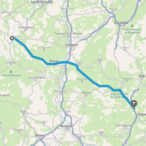 Continuer D15 (Route de Valence) sur 27 kilomètres