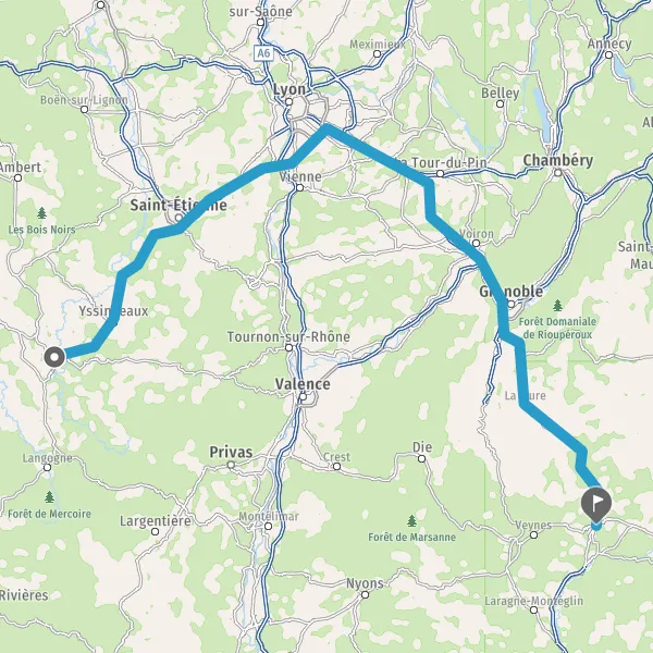 Prendre à droite et rejoindre A48. Continuer sur 51 kilomètres