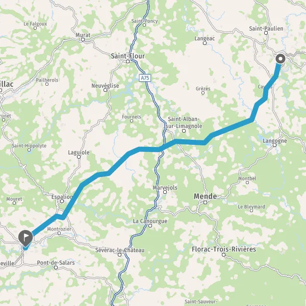 Tourner à droite sur D5 (Route de Saint-Chély) et continuer sur 16 kilomètres