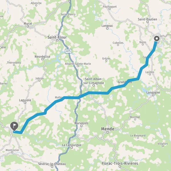 Tourner à droite sur D5 (Route de Saint-Chély) et continuer sur 16 kilomètres