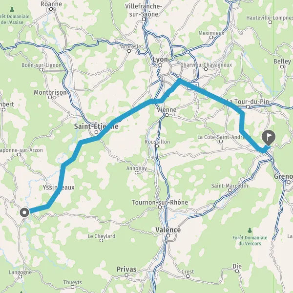 Prendre à droite et rejoindre A48. Continuer sur 34 kilomètres