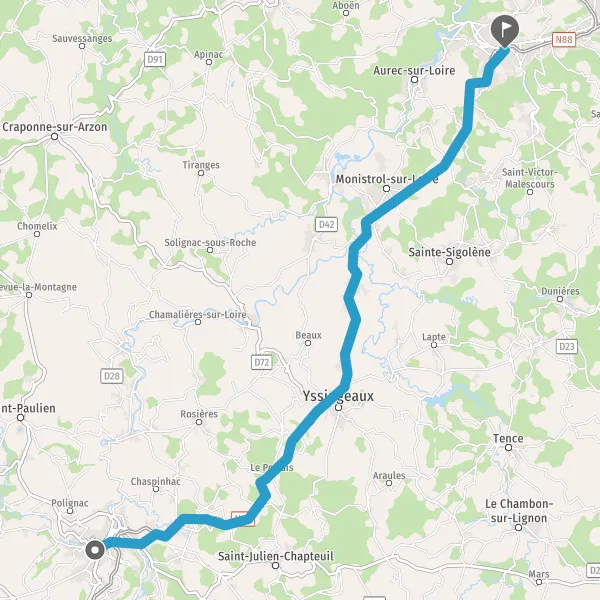 Prendre à droite et rejoindre N88. Continuer sur 6,6 kilomètres