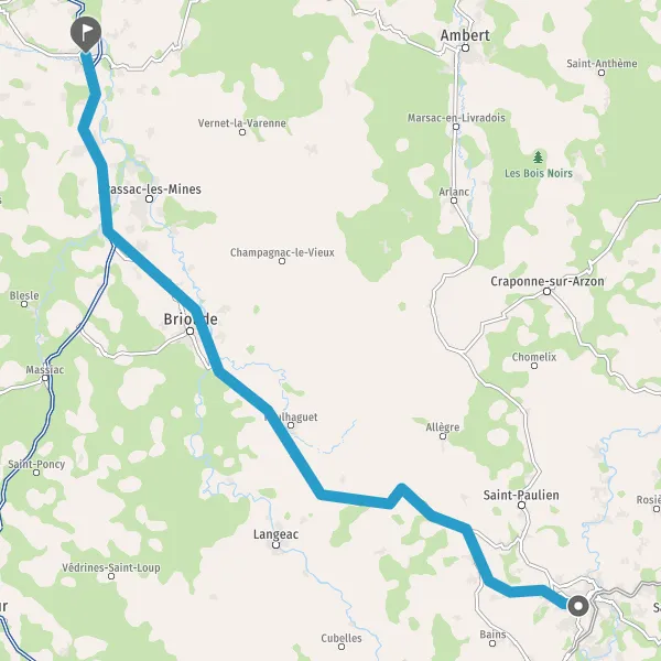 Au rond-point, prendre la 2ème sortie sur Route de Brioude et continuer sur 2,2 kilomètres