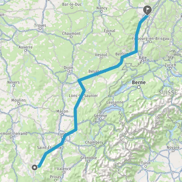 Prendre à droite et rejoindre A36 E60. Continuer sur 185 kilomètres