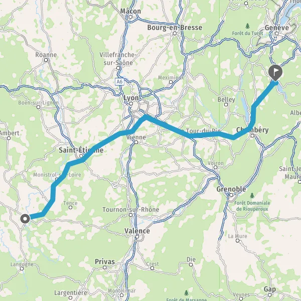 Prendre à droite et rejoindre A43 E711 E70. Continuer sur 34 kilomètres