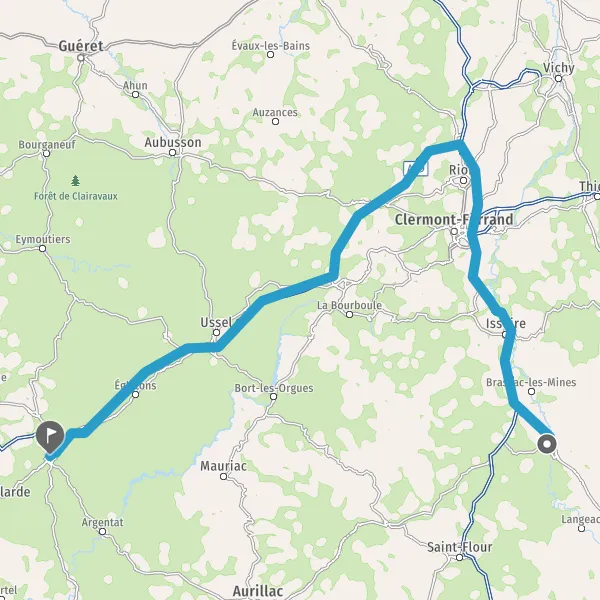 Prendre à droite et rejoindre A89 E70. Continuer sur 135 kilomètres