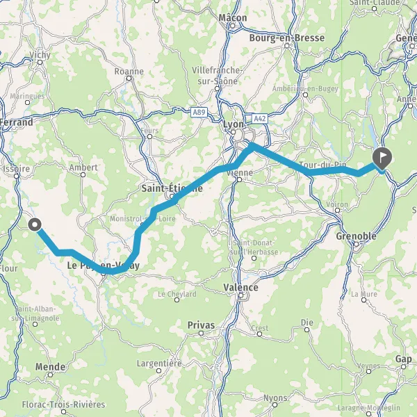 Prendre à droite et rejoindre A43 E711 E70. Continuer sur 34 kilomètres