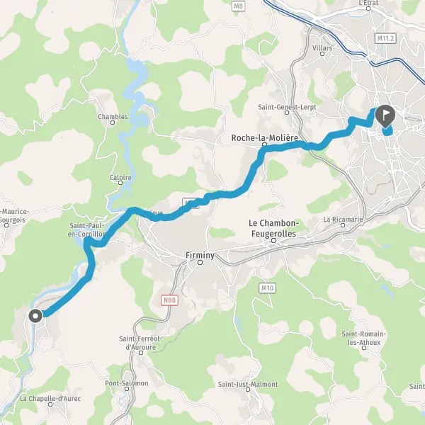 Au rond-point, prendre la 3ème sortie sur D46 (Avenue de Firminy) et continuer sur 2,7 kilomètres