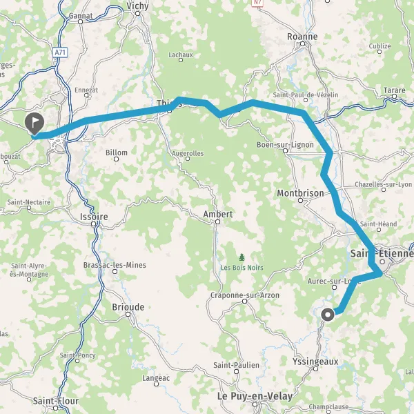 Prendre à droite et rejoindre A72. Continuer sur 46 kilomètres