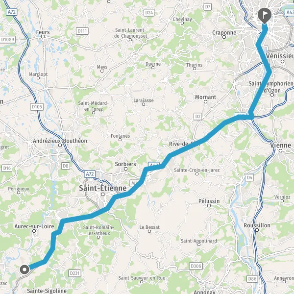 Avec le mode voiture, vous pouvez configurer vos options (type de véhicule, autoroute ou non, péage ou non, distance la plus courte), tout en ayant accès aux infos de circulation grâce à notre service d'info-trafic en temps réel. Ainsi faites des économies sur le coût ou la durée de votre voyage, en trouvant le trajet Monistrol-sur-Loire Lyon adapté à vos besoins.