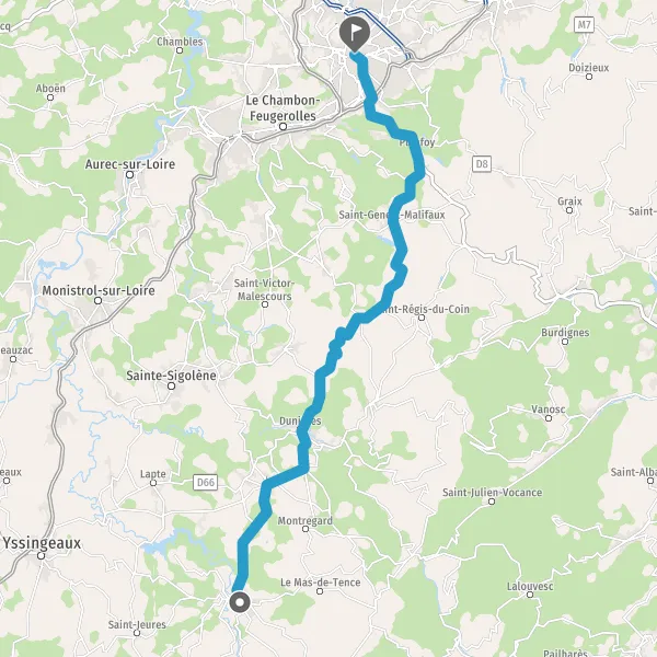 Tourner légèrement à droite sur D501 (Route de Saint-Genest Malifaux) et continuer sur 14 kilomètres