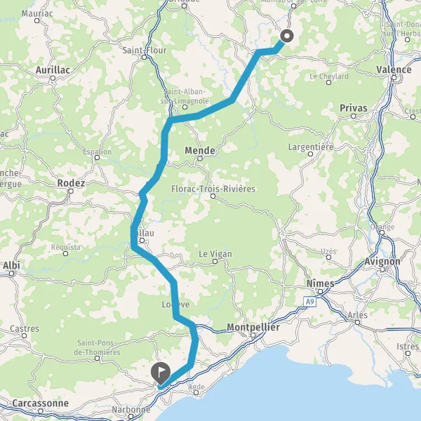 Tourner à droite sur D5 (Route de Saint-Chély) et continuer sur 16 kilomètres