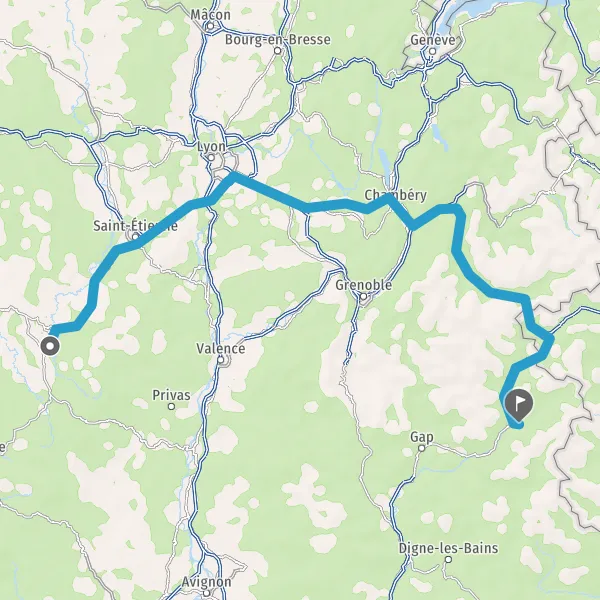 Prendre à droite et rejoindre A43 E70. Continuer sur 65 kilomètres