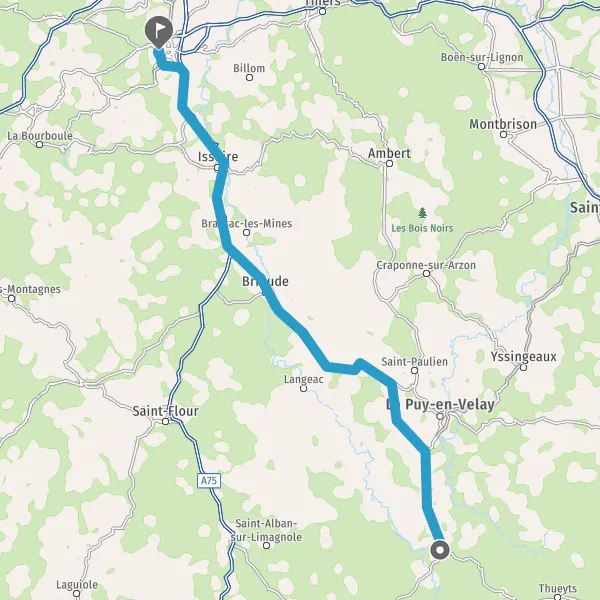 Prendre à droite et rejoindre A75 E11. Continuer sur 48 kilomètres
