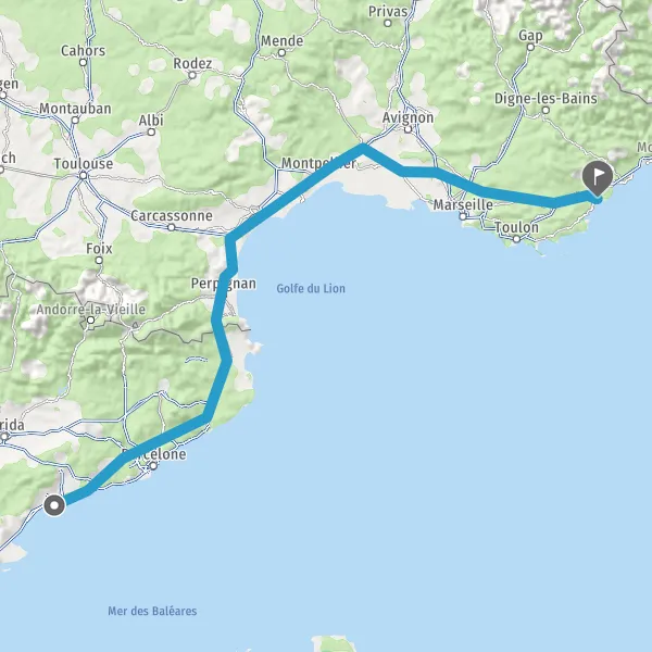 Continuer A9 E15 sur 224 kilomètres