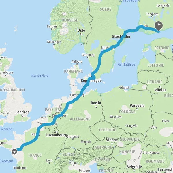 Prendre à gauche et rejoindre 1 1 E18 (Turku-Paimio moottoritie). Continuer sur 136 kilomètres