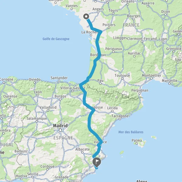 Prendre à droite et rejoindre A63. Continuer sur 205 kilomètres
