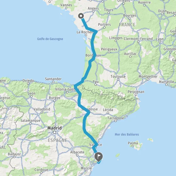 Au rond-point, prendre la 2ème sortie sur Boulevard de Vendée et continuer sur 151 kilomètres