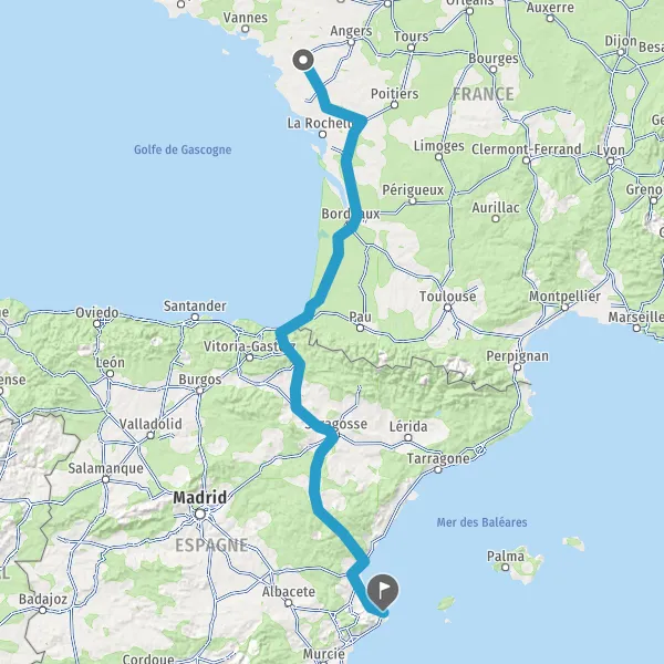 Au rond-point, prendre la 2ème sortie sur Boulevard de Vendée et continuer sur 151 kilomètres